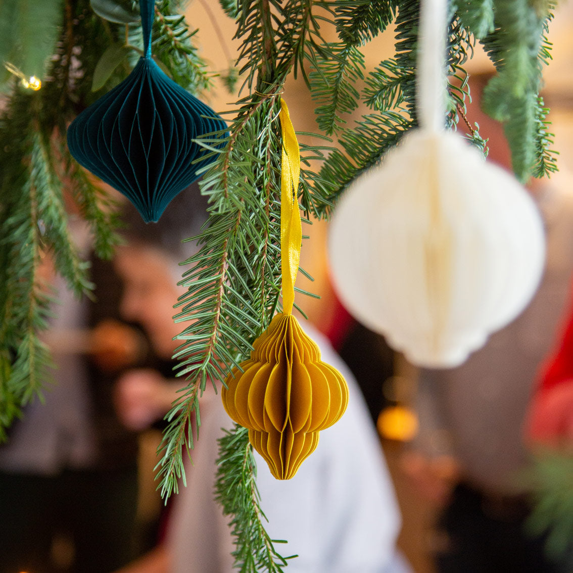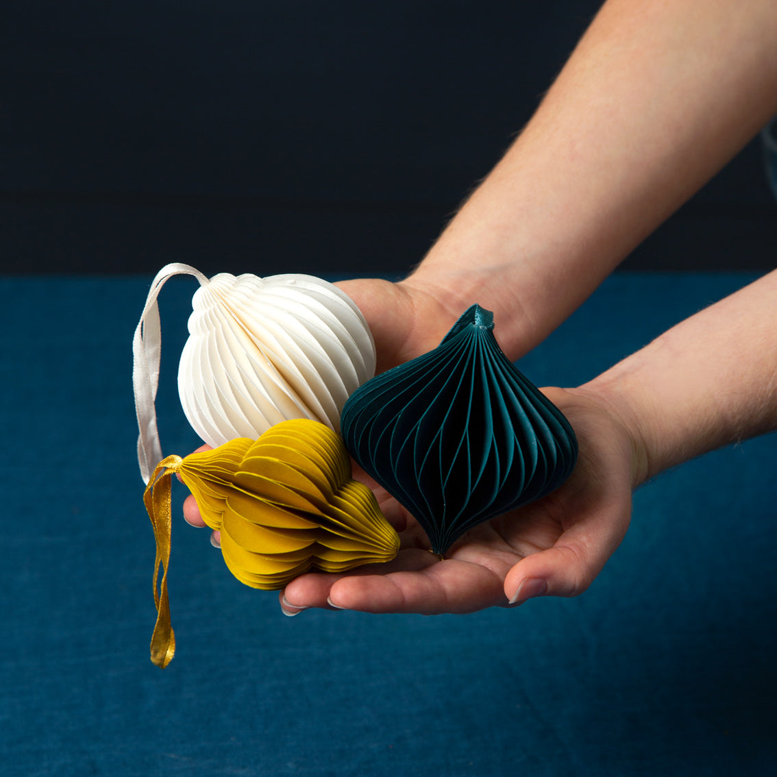 A stylish addition to your range of Christmas tree decorations, these decorative honeycomb baubles come in a pack with 3 different colours and shapes. Made from high quality coloured card, open out each bauble and secure using the magnets to create the unique honeycomb shapes. Don't forget they can be folded away and reused for another year or left up around the home as decor.