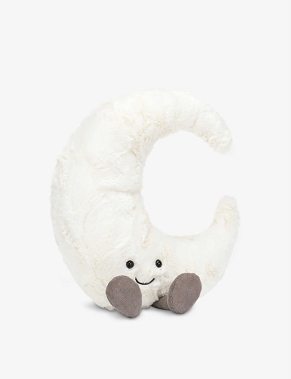 Gorgeously textured with velvety craters, Amuseable Moon is curvy and cuddly. Silvery white with squidgy cord booties, a weighted bottom and a peaceful smile, this moon is a magical crescent and a marvellous present.
