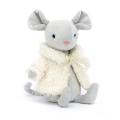 Comfy Coat Mouse has silver-grey fur, with sweet fluted ears and a long curled tail. This cute little mousey is all wrapped up in a coat of soft cream boucle, fastened with a primrose ribbon for easy removal.