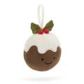 Squidgy, bright and very merry, the Festive Folly Christmas Pudding loves to hang out on the tree with pals! This cuddly fruitcake wears an icing cap with wavy embroidered edging, topped with stitched suedette holly leaves and neat red berr...