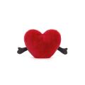 Amuseable Red Heart has scarlet plush fur and chocolate cord arms and boots! This chunky heart is squeezably soft, with bright, shiny eyes and a friendly grin. With a weighted bottom to sit up straight, this sweetheart brightens any day.