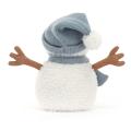 Sammie Snowman is a scrumptious scoop of vanilla ice-cream! This fleecy snowman has cord cocoa arms, stitched coal buttons and a suedette carrot nose, with a light blue knitted hat and scarf. With a sturdy bean base, Sammie's ready for any snowball fight!