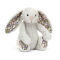 Blossom Silver Bunny has silver-grey Bashful fur with a cream bobtail, soft cotton floral ears and feet, printed with an original Jellycat design of pink and white flowers scattered among a midnight blue backdrop. The perfect nighttime comp...