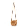 The Bartholomew Bear Bag is ruffled and ready in toffee fur, with petal-fold ears and a chunky muzzle. This cross-body bag has a caramel lining, strong webbed strap and sturdy silver zipper.