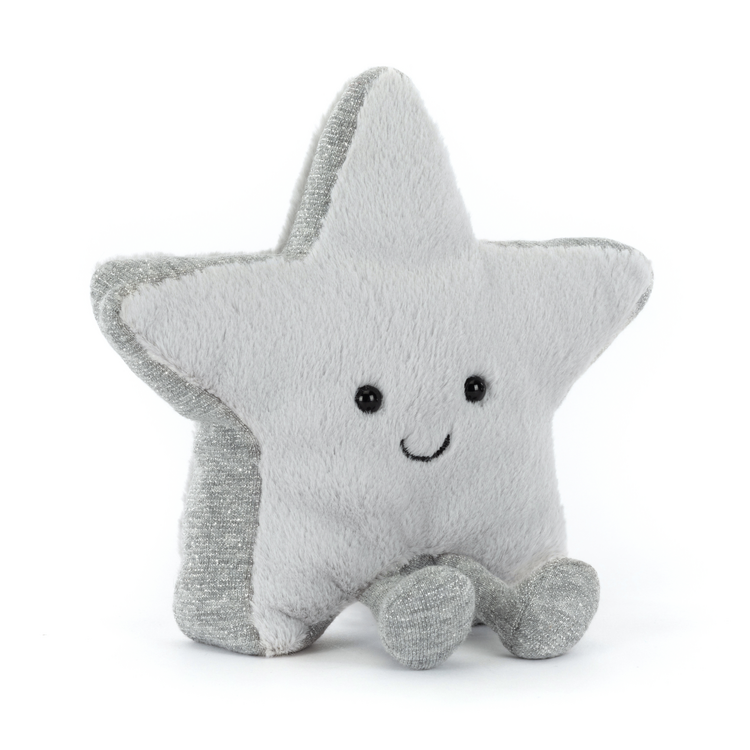 Amuseables Silver Star is soft and fluffy with silver sparkles.