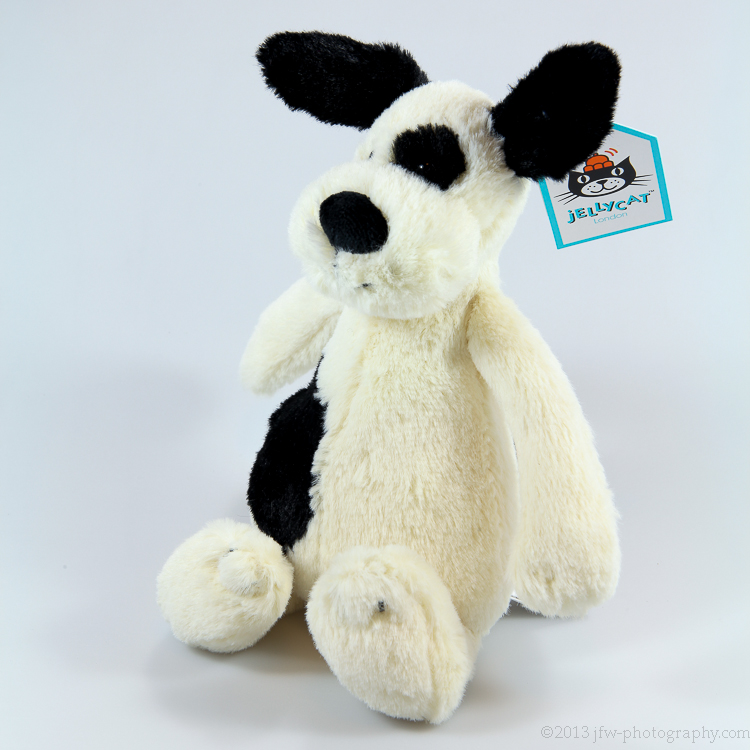 So soft and fluffy. Silky-soft and lovingly loyal, Bashful Black & Cream Puppy wants to play all day! His smudgy black patch and sooty tail make him even more adorable!