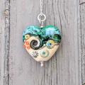 This handmade glass heart-shaped bead measures approx 30mm wide.