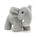 Little Diddle Elephant has a soft grey coloured fur body, cute squashy legs, out-stretched elly ears, a chunky curved trunk and cute creamy tusks.