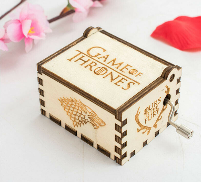 Beautifully crafted wooden musical box decorated with intricate designs and with a lid. Just turn the handle and listen to the Game of Thrones theme tune. Perfect gift for any fan of the series.
