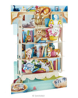 Cats on Book Shelves - 3D Pop Up Swing Card