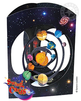 Travel through space with this perfect planetary greeting! Richly detailed in midnight blue and purple tones, this interactive 3D Swing Card features a brightly coloured solar system with stars to finish; send to space enthusiasts and intergalactic dreamers!