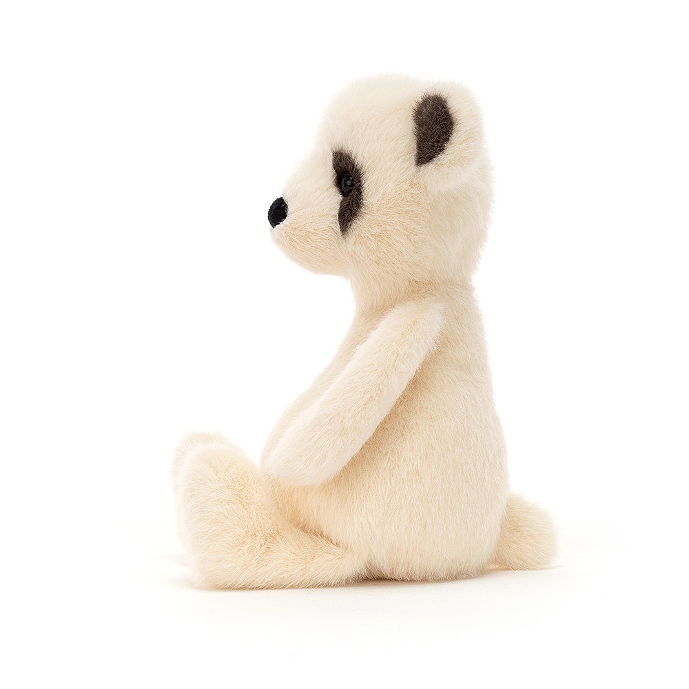 Whispit Bear is a friendly and playful companion with snuggly soft fur. Whispit has soft snow white coloured fur with and a soft and squidgy tummy. He has dangly arms and legs and beans in his bottom so that he can sit, pose and play. Gorgeously squidgy and full of character.