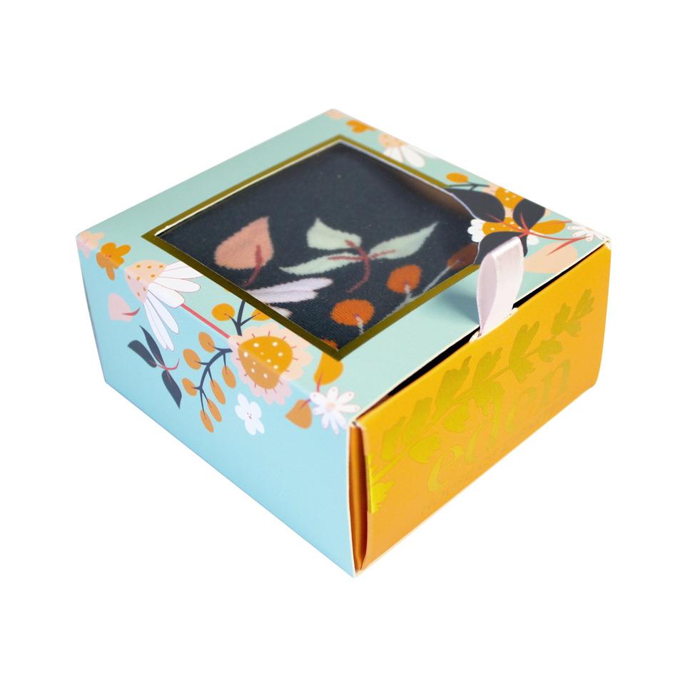 Lovely soft blue/mustard floral socks one size. UK size 4-7, EU size 36-40 A perfect gift for a nature lover !
