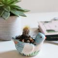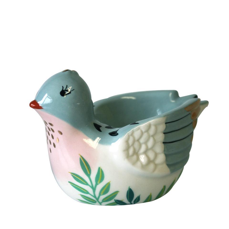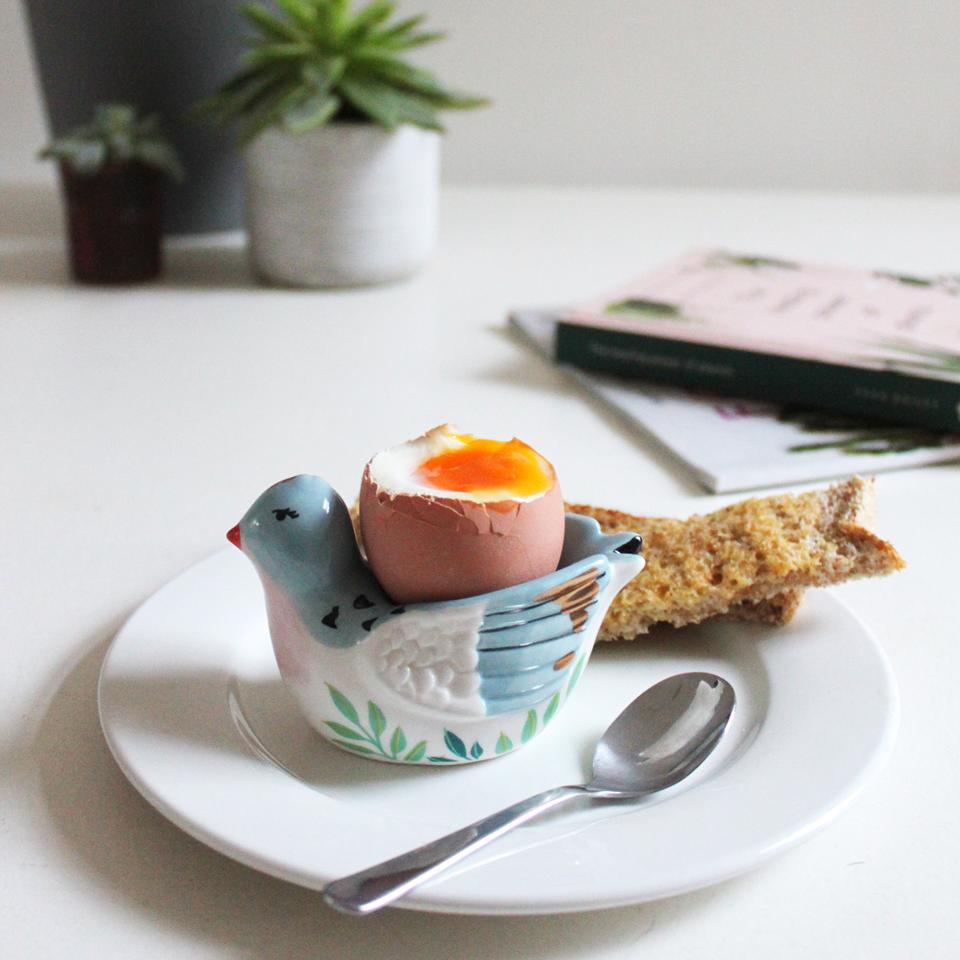 Features: This egg cup is shaped like a little nesting bird. It's wings are curved to hold your egg in place and it has pretty gold foil detailing on its wings and chest. A charming addition to the breakfast table.