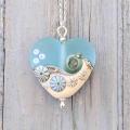 This handmade glass focal heart shaped bead measures approx 30mm wide. It was hand crafted by Julie Fountain at Beach Art Glass. The Sea Spray heart pendant is decorated on both sides and features the trademark swirl. The palest blue gl...