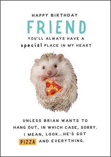 Happy Birthday friend you'll always have a special place in my heart unless Brian wants to hang out, in which case, sorry. I mean, look..he's got pizza and everything.