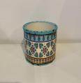 Lovely ceramic pot in a Moroccan tile pattern in turquoise, cream, ochre colours. handy for keeping pens and pencils in or plants or to put a tea light in.