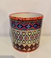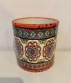 Lovely ceramic pot in a moroccan tile pattern in reds, blues and ochre. Perfect for pens and pencils, tea lights or anything else!