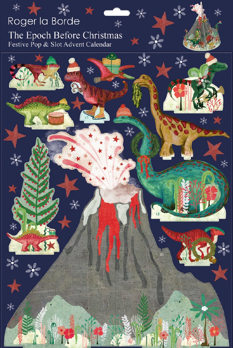 Contains 3 punch-out sheets to make an explosively festive, primeval scene.Construct the fiery, volcanic landscape, then find and pop out cheeky, prehistoric beastie-of-the-day, match the number, and fill your world with celebrating dinosaurs until Christmas is here!
