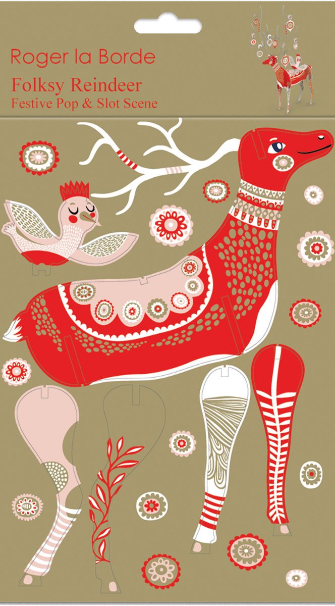 This Pop & Slot Decoration is from our Folksy Reindeer range featuring artwork by Helen Dardik