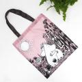 A very handy Moomin 'love' foldaway reusable shopper. It comes in a printed clip-on pouch so pop it in your handbag or clip to your pocket. You'll never need a plastic carrier bag again! It's eco-friendly and was once a plastic bottle- lightweight but very strong. Features the gorgeous love meadow scene illustration. Full print both sides.