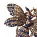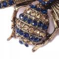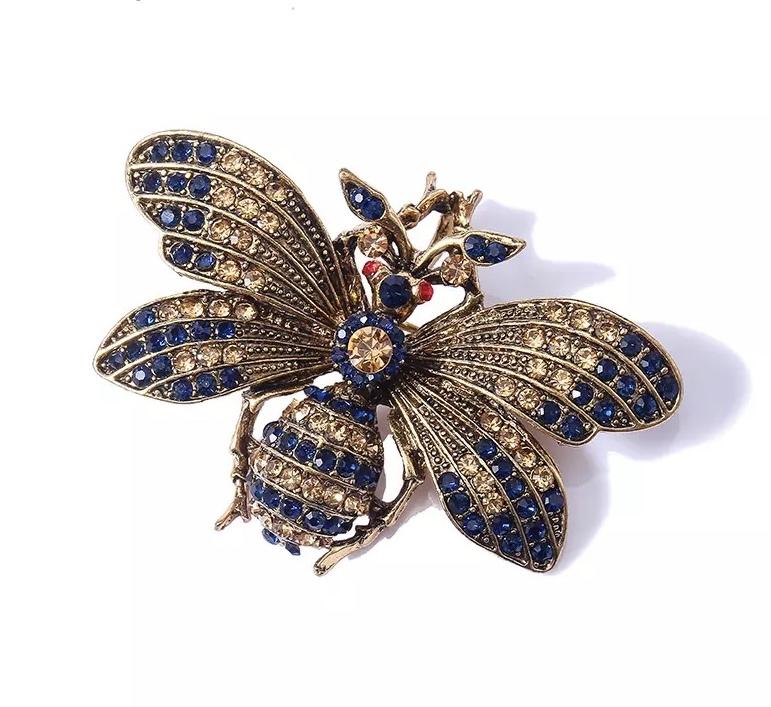 Beautiful large bronze colour metal bee brooch with gold and deep blue rhinestones.