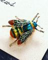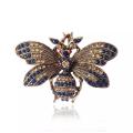 Beautiful large bronze colour metal bee brooch with gold and deep blue rhinestones.