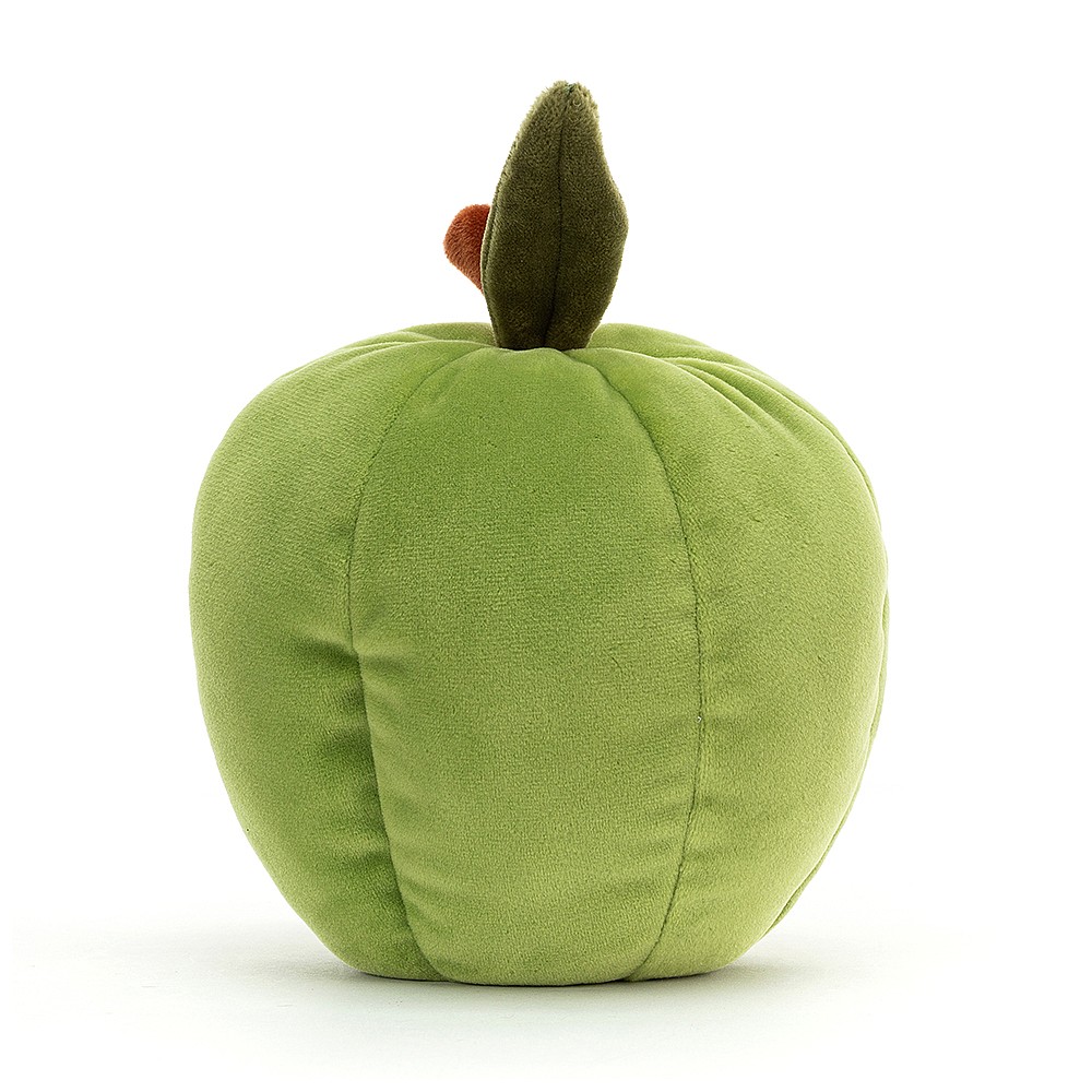 Brambling Pig has munched their way into a rather cosy hidey-hole! This peachy piglet is nestled inside a stretchy-soft and cosily lined green apple, with a velvety leaf on top.