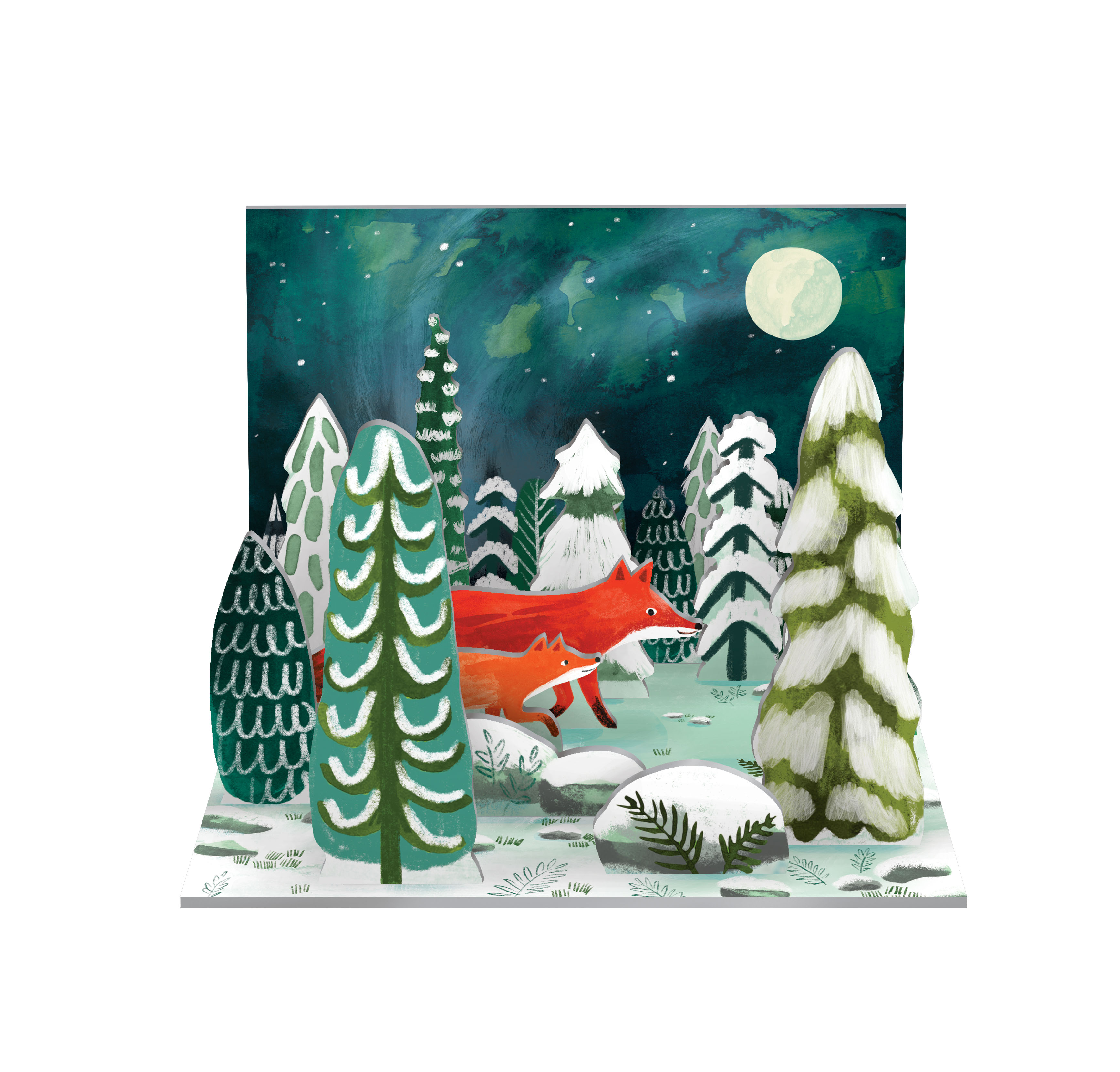 Contains 2 punch-out sheets to create a snow-laden, Alpine forest with fox and cub.